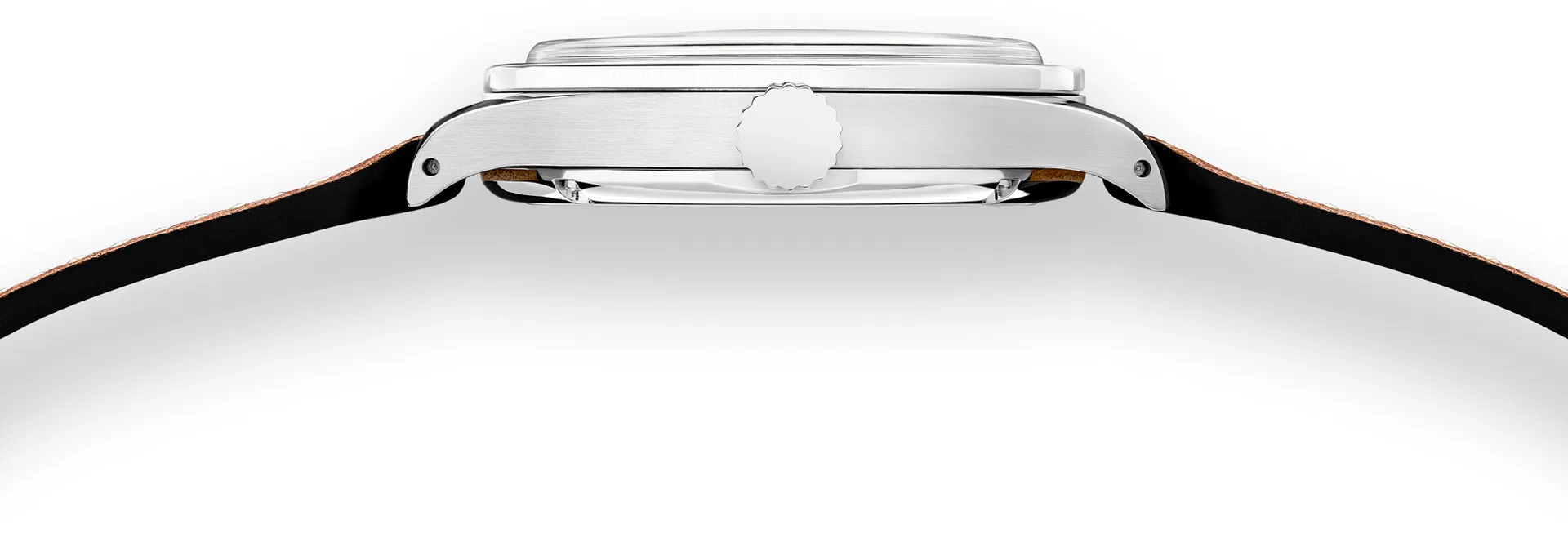 Az MR Classic vonalai letisztultak, letisztultak és elegánsak. Az acél tok átmérője 36 mm, a lünetta és a fülek polírozott felületkezeléssel rendelkeznek. A 44 mm-es oldal vízszintesen szálcsiszolt, kiegyensúlyozott kontrasztot teremtve az egész órának.